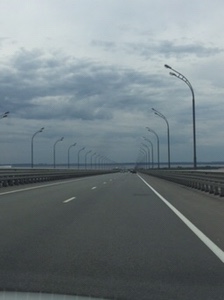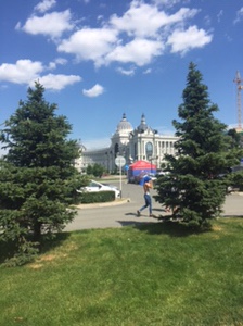 Woke up in Kazan after flight last night.Lunch in Tartarstan fast food joint- very good. Headed to fan park for France v Uruguay, (finished 2-0, no Cavani and Suarez quiet) before Kazan arena for BRAZIL V BELGIUM Final score 2-1 …..Belgium.Steak dinner in nice place close to Hotel. Serenaded by enthusiastic Russian w/ national anthem. They love it. Decided to head to Samara.Crossing the Kama River southwards towards Samara.